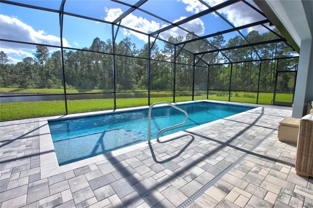 Step into this Stardom Floor plan by Del Webb Pulte! This beautiful one-story 3-bedroom, 2.5-bathroom pool home shows like a model home. This premium homesite has been described as “the best lot” in the community. It features privacy with the rear of the home facing south, offering full day sun, beautiful water views and an expansive green area. The open concept living area flows effortlessly, combining the kitchen, dining, and gathering room into one space. The gourmet kitchen is the focal point, featuring KitchenAid appliances - including a natural gas cooktop, double oven with convection and air-fry and counter depth full-size refrigerator. A separate, but equally functional space offers more cabinet storage, a wine rack and a built in beverage fridge. Soft-close cabinetry, a wood canopy hood, gorgeous tile backsplash, quartz countertops, and under-cabinet lighting add to the perfect blend of style and convenience. The home features high ceilings, 8’ interior doors, crown molding, and a luxurious double tray ceiling in the main living area that elevates the entire space, adding a sense of grandeur while maintaining an intimate, welcoming atmosphere perfect for entertaining. Additionally, 2 Restoration Hardware stunning CRYSTAL HALO CLEAR ROUND LED CHANDELIERS, valued at over $10,000. were professionally installed to enhance the interior design. The full wall pocket sliding glass doors, which connect the living area to the covered lanai, flood the home with natural light. Step outside into your private outdoor retreat, because this exceptional backyard features a covered lanai, screened in outdoor entertaining area, with a salt water and heated swimming pool. The private Owner’s Suite, offers a tranquil retreat with a spa-inspired in suite bathroom, oversized walk-in closet with built in cabinets, a linen closet, zero-entry walk-in shower with built-in bench and three shower heads, and an enclosed toilet. This exceptionally upgraded Stardom also features two additional bedrooms located on the opposite side of the home from the master bedroom, allowing privacy for everyone! A spacious front area flex room that features glass French doors, offers privacy and is perfect for a sitting room or home office. The laundry room has built-in cabinetry; a quartz trimmed utility sink and features a Whirlpool washer and dryer. The upgraded 4’ extension of the 2-car garage is complete with an epoxy finished floor and provides plenty of space for an extended vehicle, a golf cart, storage and hobbies. For EV cars, there’s already an electric car charger installed. This home was just completed in the Spring of 2025. It features over $326,000 in upgrades, which includes a $130,000 pool and a lot premium of $133,000. This home still is covered by the Del Webb Pulte one year new home warranty, so don’t miss out on your chance to own one of the best homes in the neighborhood, available for immediate occupancy! Your homes exterior and yard maintenance are included. Del Webb Sunbridge is a gated 55+ active adult natural gas community offering an abundance of resort-style amenities with social events and activities centered in the 27,000-square foot clubhouse and planned by a full-time Lifestyle Director. With a zero-entry pool with lap lanes, resistance pool, poolside hammocks, and heated spa, sports courts, a movement studio, walking trails and more. For more community info, visit the Del Webb Sunbridge website.