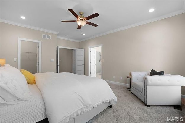 Move-in ready new construction on 3.11 acres in the highly sought-after The Estates at Schaper Farms! This premium Cypress Ranch by Jaeger Homes delivers luxury, space, and convenience with over $45,000 in builder upgrades already included—a rare opportunity for instant value without the wait of building. Designed for modern living, the 2,432 sq ft split-bedroom floor plan offers 3 bedrooms, 2.5 baths, and a dedicated study. The great room showcases a stunning floor-to-ceiling stone electric fireplace, while the gourmet kitchen features 42” soft-close cabinetry, quartz countertops, double ovens, a smooth-top range, farmhouse sink, cabinet hood, walk-in pantry, and a large island perfect for entertaining. Step out from the dining area onto the covered patio and enjoy peaceful wooded views and a spacious lot ideal for future outdoor living, a pool, or a detached shop. The primary suite feels like a retreat with dual vanities, soaking tub, oversized walk-in shower, and two walk-in closets. The walkout lower level with 9 ft pour offers endless possibilities for future finishing. Additional highlights include an oversized angled 3-car garage (31' x 25'), irrigation system, partially sodded yard, insulated windows, city-maintained concrete streets, energy-efficient construction, and low HOA dues. Located minutes from highways, Wentzville schools, and shopping, this upgraded acreage home offers the perfect blend of privacy and convenience. Why wait to build? Move in and start enjoying the acreage lifestyle today at The Estates at Schaper Farms.