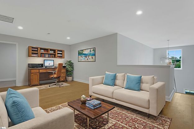 October Completion, Move-in Ready! Luxury, Low-Maintenance Living at Hamilton Townes in Greenville Welcome to the Hudson Plan—a spacious interior townhome offering over 2,200 square feet of thoughtfully designed living space with the feel of a single-family home. Located in the highly sought-after Verdae area, this home includes a main-level owner’s suite with two bedrooms with walk-in closets a large upstairs flex/game room, dedicated office space and walk-out attic on the second level with an attached two-car garage. Move-in ready w/ ready October 2025. The two-story foyer opens to a bright and inviting main level featuring 5" birch hardwoods, crown molding, and recessed lighting. The open-concept layout seamlessly connects the kitchen, dining, and living areas, with a wall of glass opening to a covered porch and fenced backyard overlooking the common area that will feature shade trees along the perimeter. Lawn care is handled by the HOA, offering true lock-and-leave convenience. The kitchen is designed for both beauty and function, featuring painted cabinetry, Calacatta quartz countertops, stainless steel appliances with a gas range, soft-close drawers, and an oversized island with seating and extra storage. With generous counter space and cabinetry, this kitchen rivals those found in detached homes. The main-level owner’s suite includes a walk-in closet and a spa-inspired bath with double vanities, quartz countertops, level 4 tile, and a tile walk-in shower with bench and frameless shower door. Upstairs are two additional bedrooms with walk-in closets, a full bath with separate water closet, a loft ideal for a second living space or office, and a finished flex room perfect for storage, fitness, or hobbies. Walk-out attic access adds even more storage. Built by local custom builder LS Homes, with over 30 years serving the Upstate, this home includes all-new systems and is backed by a builder’s warranty for peace of mind. Located just 10 minutes from Downtown Greenville with easy access to I-85, I-385, and the Swamp Rabbit Trail extension, Hamilton Townes combines modern convenience with a connected, active lifestyle. Limited Time Offer: The builder is currently providing Flex Cash toward closing costs when using the preferred lender and closing attorney or a move-in package including washer, dryer, refrigerator, and blinds—your choice! Contact us today to learn more about this beautiful new townhome in one of Greenville’s most desirable communities! (some photos virtually staged).