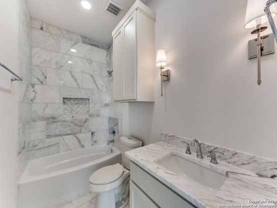 This brand new townhome is at the heart of Olmos Park. Situated within walking distance to shops, restaurants, and all the amenities that Olmos Park has to offer. This perfectly located home is under 10 minutes to downtown San Antonio, the Pearl, San Antonio's Museums, and the Airport. The transitional design includes floor to ceiling windows and elevated finishes throughout, including white oak hardwood floors, a master fireplace, ample storage, marble countertops, and stainless steel appliances. The