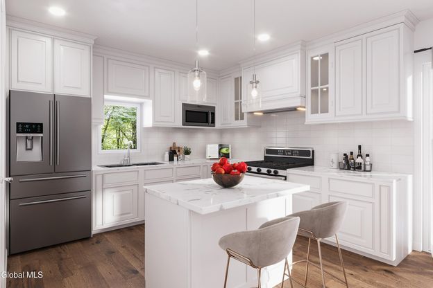 To be built. This stylish Raised Ranch-style home is located in a quiet subdivision in Ravena and offers approximately 2,320 sq. ft. of finished living space, featuring 4 bedrooms and 3 full baths across two levels. The open-concept layout showcases premium cabinetry, quartz countertops, a center kitchen island, and recessed lighting, creating a bright, modern, and inviting atmosphere ideal for everyday living and entertaining. The design also includes a comfortable primary suite, generous storage, and flexible living areas for maximum functionality. The builder will finish the ground floor living area, with the option to customize the layout to meet the buyer's preferences if a purchase agreement is in place early. For comfort and efficiency, the home features an energy-efficient electric heat pump with air conditioning and a 40-gallon hot water tank. The property also includes a spacious garage of over 950 sq. ft., providing ample room for parking, storage, or a workshop.