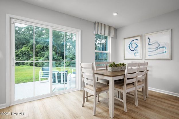 Welcome to Bell Creek where you can own a new home nestled in a serene setting with tranquil tree-lined homesites, while being conveniently located near everyday conveniences in Wilmington & Leland. You'll love the Rosewood. This two-car garage ranch home offers comfort and convenience on one exceptionally livable level. Enter the large foyer from the front or garage doors, where there's room to add functional family storage. Past the laundry room, the light-filled great room adjoins the gourmet kitchen, where a center island and separate dining space invite every opportunity to gather with friends and family. A full bath and two bedrooms will make guests feel at home, while you relax in the luxury owner's suite with a walk-in closet and dual vanity bath.