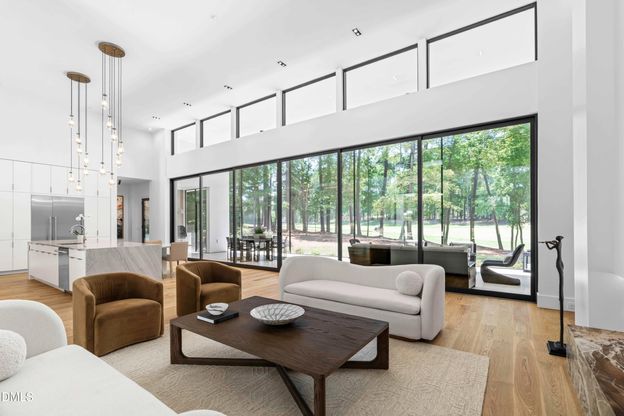 Amazing Architectural Artistry on Annandale Opportunities like this are nearly impossible to find. This 0.79-acre flat homesite is one of the most spectacular in all of Cary's coveted MacGregor Downs, enveloped by the golf course on three sides and offering breathtaking views at every turn. Out front, you'll enjoy sweeping vistas of the 1st hole and the shimmering MacGregor Downs Lake. On the northwest side, the 4th fairway stretches out like a private green, while the 5th tee sits just beyond your backyard. It's no wonder this was one of the first three homesites to be built on when MacGregor Downs was originally developed, and today it remains one of the most desirable addresses on Annandale Drive. But this is more than a homesite. It is a canvas to bring to life the latest architectural masterpiece by Haus Development Group, one of the Triangle's premier modern design-build firms. Together, you can shape a residence that blurs the boundaries between indoors and out, that celebrates natural light and panoramic views, and that turns daily life into something artful. The marketed design is a jaw-dropping, over 6,000 square foot residence that blends soaring architecture with thoughtful livability. Sporting 16-foot ceilings in the open great room, kitchen, and dining room and a wall of sliding glass doors and transom windows that opens onto a 49-foot screened in porch with outdoor kitchen, this home seamlessly blends its stunning surroundings with the interior. A pool can be added to accentuate the backyard oasis. The chef's kitchen and scullery feature quartzite countertops and top-of-the-line appliances, while a three-sided glass wine display provides a striking design moment. Adjacent to the great room, the bonus room is enveloped by 3 sides of floor to ceiling glass, wet bar, and wraparound porch - ideal for entertaining or simply viewing the golf course like a living painting. A private study and first floor primary bedroom with spa-like bath and dual closets complete the main floor. On the second floor, you'll find 10-foot ceilings throughout with 4 additional bedrooms, each with an ensuite bath. Every detail is curated for both beauty and substance: a standing seam metal roof, programmed lighting system, 26kW generator, foamed in insulation, high-efficiency HVAC with smart thermostats, and four-car garage with EV charger (note: 4th car garage can be converted into an optional guest suite). This is a place where architecture, technology, and landscape meet. It is a rare chance to bring to life a home that honors its setting, where walls of glass dissolve into views, and where details are curated to elevate every moment spent within it. Note: Interior photos are representative of the builder's work from another home on the 5th Fairway in MacGregor Downs.