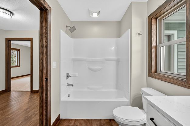 Charming New Construction on a Corner Lot Welcome home to this beautifully designed new construction ranch, perfectly situated on a shaded corner lot with a covered front porch and a 2-car attached garage. Step inside to discover an open-concept layout that seamlessly connects the kitchen, dining, and living areas, ideal for modern living and entertaining. The spacious kitchen features a large island with quartz countertops and a stylish porcelain backsplash, offering both beauty and functionality. Each of the two bedrooms includes generous walk-in closets for plenty of storage and organization. Enjoy the outdoors on the large deck just off the patio doors, the perfect place to relax or host gatherings. The lower level is already framed for future expansion, with space for a family room, bathroom, and two additional bedrooms featuring large windows that fill the space with natural light. With thoughtful design, quality finishes, and room to grow, this home offers the perfect blend of comfort and style!