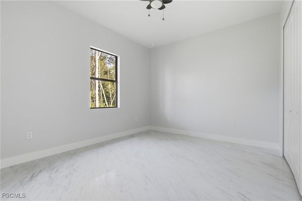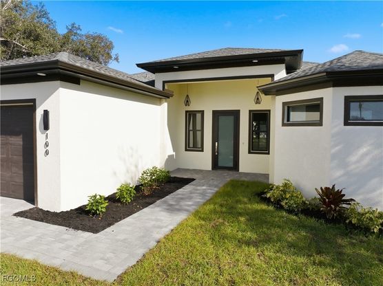 Discover a brand-new single-family home in the Mirror Lakes community featuring 1,894 sq ft of living space, high ceilings and an open-concept floor plan. The kitchen is equipped with 42-inch soft-close cabinets, quartz countertops and a full suite of new appliances. Porcelain tile flows throughout the home and 8-foot doorways enhance the sense of space. A large laundry room with a built-in sink adds convenience. Impact-rated windows and doors support durability and efficiency. Situated on city water and sewer and located in a no-flood-insurance zone, this home eliminates the need for flood coverage. Outdoors includes yard lined with Calusa Rosa hedging, dedicated space for a pool and fruit-tree plantings, and the oversized 0.37-acre corner lot offers ample room for outdoor living. Community features include hiking and biking trails, a children's playground and conservation areas. Nearby amenities include dining, shopping, medical services and parks. The property also enjoys fast access to major corridors and approximately 14 miles to Southwest Florida International Airport (RSW). Virtual tour available in the MLS.0.37-acre oversized corner lot - Built 2025 - 3 bedrooms / 2 baths - 1,894 sq ft This brand-new single-family home in the Mirror Lakes community offers modern construction and quality upgrades throughout. The open-concept floor plan features high ceilings, 8-foot doorways, and porcelain tile throughout. Schedule your showing today. Community trails & children's playground in Mirror Lakes (within community) Mirror Lakes Elementary School (approx. 2.8 mi) Veterans Park Academy for the Arts (approx. 3.2 mi) Lehigh Towne Centre Shopping (approx. 4.2 mi) Lehigh Regional Medical Center (approx. 5.5 mi) Southwest Florida International Airport (RSW) is approximately 14 miles Access to major corridors (near SR 82) providing regional travel ease