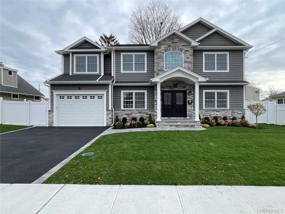 Brand New Construction located in the heart of Hicksville, near shopping, dining, transportation and schools. True Center Hall Colonial with 5 spacious bedrooms, 4.5 baths and 1.5 car garage. Oversized guest bedroom and full bath located on the first floor make an ideal living space or bedroom on the first floor. Open concept layout with a gourmet chef's kitchen features high-end stainless steel appliances, double cabinetry to the ceiling and an oversized center island. Sun drenched living room, coffered ceiling in the dining room and elegant millwork throughout the entire house. Junior suite with full bath located on 2nd floor. Primary bedroom with tray ceiling showcases a grand walk-in closet and spa-like primary bathroom. Unfinished full basement with separate outside entrance offers endless possibilities for customization. Fully white vinyl fenced property with in-ground sprinklers and backyard patio perfect for entertaining.