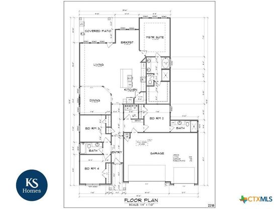 This stunning King Signature Homes custom design offers approximately 2,218 square feet of open, functional living space that perfectly blends style and comfort. The thoughtfully crafted layout features four spacious bedrooms and three full bathrooms, ideal for families, guests, or a home office setup. Upon entering, you are greeted by an inviting open-concept floor plan with a large living area that flows seamlessly into the dining and breakfast spaces. The kitchen serves as the centerpiece of the home, complete with a large center island, walk-in pantry, and premium finishes throughout. The primary suite is privately situated at the rear of the home and features tray ceilings, a luxurious en-suite bath with dual vanities, a garden tub, a walk-in shower, and an oversized walk-in closet. Bedroom two includes its own dedicated full bath, creating the perfect guest or multigenerational arrangement. Additional highlights include a spacious utility room with a built-in mud bench, ample storage, and an oversized garage with attic access. Outdoor living is enhanced by a covered back patio designed for relaxing evenings or entertaining guests. Located in the desirable Harker Heights community of The Village at Nolan Heights, this property offers the convenience of nearby schools, shopping, dining, and entertainment, paired with the quality and craftsmanship that define every King Signature Homes build.