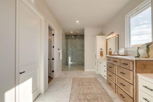 A fresh take on luxury living in East Edmond, crafted by Ripple Creek Homes. This home in Stone Hill Cottages at Iron Horse Ranch blends modern design, thoughtful details, and low-maintenance living without sacrificing privacy or outdoor space. Warm white oak wood floors, designer lighting, and a zellige-tile fireplace set the tone the moment you enter. Large windows bring in excellent natural light, and a dedicated study off the entry provides the perfect workspace or flex room. The kitchen features a commercial-grade Thor gas range, oversized island, walk-in pantry, and custom cabinetry. The spa-like primary suite includes a wet-room style bath with a frameless glass, curbless shower room and a soaking tub for a true retreat experience. You’ll love the direct access to the utility room from the primary closet, adding ease to daily living. Secondary bedrooms are spacious and versatile for guests, hobbies, or quiet relaxation. The private fenced backyard is designed for year-round enjoyment with a covered outdoor living space, fireplace, and a turf putting green—a perfect spot to unwind at the end of the day. Enjoy new construction, timeless finishes, and a community with a pool, clubhouse, yard maintenance, and walkability—minutes from Edmond dining, shopping, and conveniences. Experience lock-and-leave luxury with signature Ripple Creek quality.