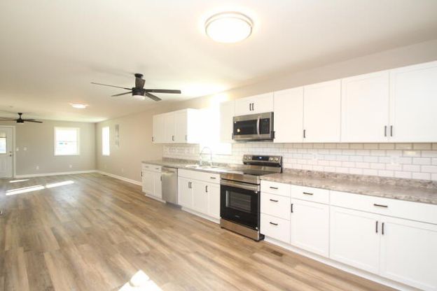 Come check out this new construction in downtown Lawrenceburg! Spacious living area with new kitchen, primary bed/bath with walk in shower, 2 additional bedrooms, additional bath with tub/shower, utility room that leads to covered back porch. Laminate flooring throughout! Relax on your covered porch or walk to downtown for lunch. You just may want to call this HOME!