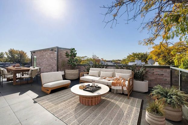 Welcome to 134 Weirfield Street - a boutique townhome-style condo redefining Bushwick living. With just two residences, this building blends the scale of a townhouse with the ease of condominium living. Residence #2 is a sprawling 4BR/2.5BA duplex offering 1,789 sqft of interior space and a 1,064 sqft private roof terrace. The main level boasts a nearly 20-ft wide living/dining room with floor-to-ceiling windows, oak floors, and a stunning chef's kitchen featuring mahogany and off-white cabinetry, quartz counters, Venetian plaster, and a full Bertazzoni appliance suite. Upstairs, four bedrooms include a light-filled primary suite with double closets and a spa-like marble bath with dual rainfall showers and a deep soaking tub. A second full bath and half bath are equally refined. Crowning it all: a massive private roof terrace spanning the full building length - your sanctuary above Bushwick's tree-lined streets. Perfectly located near neighborhood favorites (Barchaa, The Steel Mill, Illegal Taqueria, Angie's, and more) with easy access to the J at Halsey and the L at Wilson.