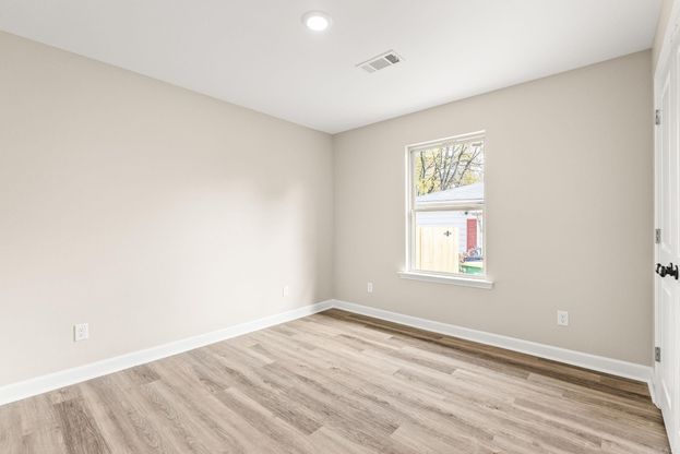 Beautiful all-brick, maintenance-free home featuring dark soffit and fascia for striking contrast, gutters, a 2-car garage with keyless entry, and an 8’2” x 9’4” covered front porch. Inside, the east wing offers wide-plank luxury vinyl flooring, recessed lighting, custom crown and trim, an entry and linen closet, plus access to two bedrooms and the hall bath. Bedroom 1 is approx. 12’2” x 10’6” with built-ins and two 5’ x 3’ windows; Bedroom 2 is approx. 12’2” x 9’3” with built-ins and a 5’ x 3’ window. The hall bath includes a custom quartz vanity, oil-rubbed bronze fixtures, and a tub/shower combo. The master suite is approx. 17’6” x 11’6” with crown, recessed lighting, and a 5’ x 3’ window. The master bath offers a double quartz vanity, tub/shower combo, and a spacious 7’7” x 8’2” walk-in closet. The living area (approx. 23’ x 15’2”) includes recessed lighting and backyard access. The dining area opens to the kitchen, which features quartz counters, custom cabinetry, and stainless GE appliances. Exterior highlights include an 11’9” x 7’10” patio and a huge privacy-fenced backyard with gate.