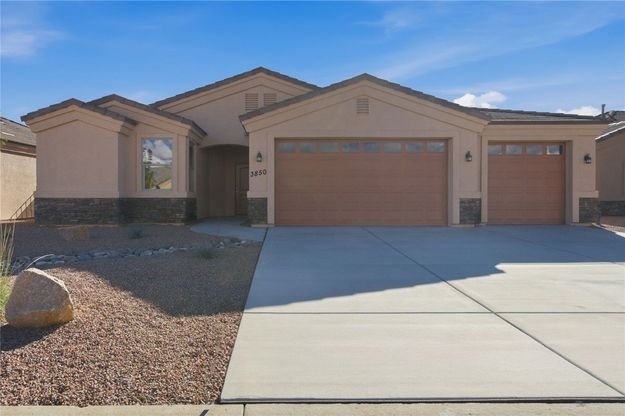 Beautiful BRAND NEW HOME located at 3850 McVicar Ave, Kingman, AZ 86409! This 3-bedroom, 2-bath residence features a spacious 3-car garage with a garage door that opens directly to the backyard, offering added convenience and functionality. Inside, enjoy an open, modern floor plan with quality finishes throughout. The kitchen provides ample cabinet space and flows seamlessly into the dining and living areas. The primary suite includes a well-sized closet and a private bathroom with dual sinks. Additional bedrooms offer generous space for family or guests. The nice-sized backyard features a large covered patio, perfect for outdoor dining and relaxing while taking in the beautiful mountain views. Ideally located near schools, shopping, and local amenities, this move-in-ready home is a must-see!