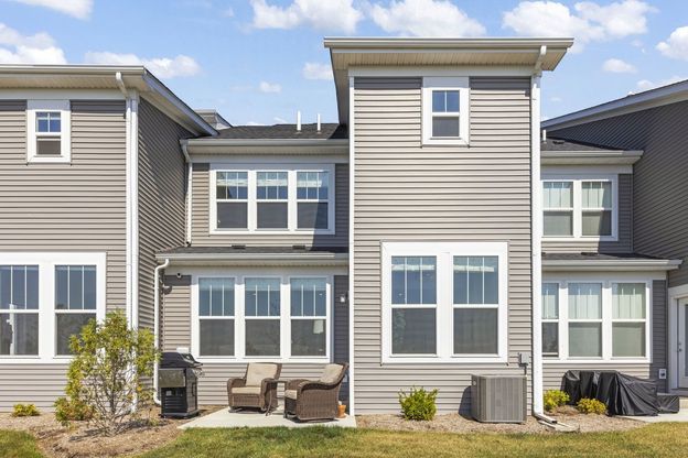 Available now and Move-in Ready with gorgeous view of the pond! Welcome to your dream home in the Townes at Sawgrass, located in the prestigious district 204 with access to the award-winning Neuqua Valley High School that was recently voted a 2024 National Blue Ribbon School. This stunning Bowman model features 3 bedrooms, 2.5 baths, and beautifully designed living spaces throughout. The chef's kitchen boasts a massive center island, 42-inch white custom cabinets, stainless steel appliances, a pantry, a brand-new refrigerator, and a striking tile backsplash, all opening seamlessly to the sun-filled family room complete with a cozy new electric fireplace and custom cabinetry. Upstairs, the private owner's suite offers an extended layout with two additional feet of space, a spa-like bath with Quartz countertops, dual vanities, soaking tub, and a glass-door shower along with a large walk-in closet. Two generously sized bedrooms, large hall bath, and a convenient second-floor laundry complete the upper level. The main floor impresses with 9-foot ceilings, enhanced vinyl plank flooring, and a rear extension featuring a bright sunroom with custom built-ins that opens to a patio overlooking the serene pond. Thoughtful updates include a new washer and dryer, custom entry built-ins, new garage storage, epoxy garage flooring, a new opener, and updated window coverings. With serene pond views, stylish upgrades, and a prime location near shopping, dining, golf, and top-rated schools, this move-in ready home offers the perfect blend of comfort and convenience.