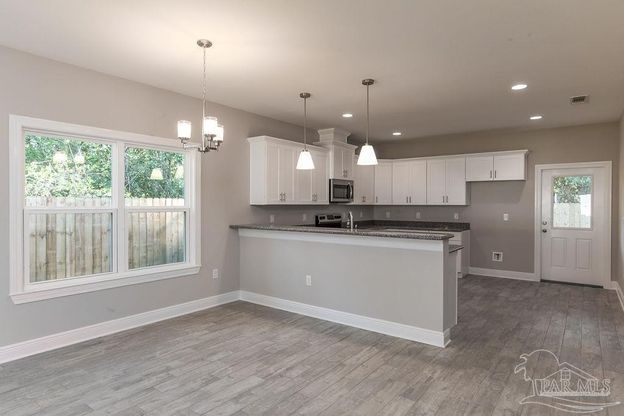 New build and almost complete (December 2025 completion) BUILDER OFFERING BUYER CLOSING COSTS WITH ACCEPTED OFFER. NO HOA. Located in the desirable area of East Navarre. This area has ''A'' rated schools. This home has an interior gray color scheme. LVP flooring throughout the home (no carpet) and is natural wood color and a tiled master shower! Large bedrooms and great for a family or roommates. The perfect size kitchen with granite countertops and large pantry. Lawn pump and sprinkler system included. Some photos of different home, same floor plan. Builder/Owner is a Florida Licensed real estate agent.