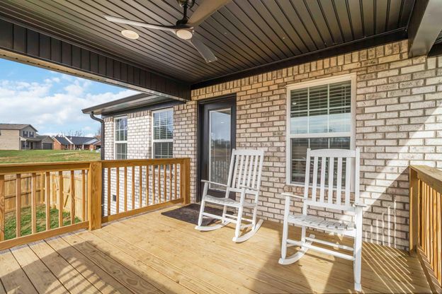 Welcome to 116 Patriot Trail - a charming brick and stone home just over one year old! This beautifully crafted 3-bedroom, 2-bath residence showcases modern living with gorgeous character throughout. Step inside to a bright, open layout featuring stylish finishes, warm accents, and a thoughtfully designed floor plan ideal for everyday comfort. The inviting kitchen flows seamlessly into the dining and living spaces, creating the perfect setting for gathering and entertaining. The primary suite offers a relaxing retreat with a spacious layout and contemporary en-suite bath. The two additional bedrooms are generous size to accommodate a growing family. Outside, you'll love the fully fenced backyard and covered deck! This space is great for pets, play, privacy, and relaxation. With its like-new condition, eye-catching curb appeal, and quality brick-and-stone construction, this home delivers both beauty and low-maintenance living. Don't miss your chance to own this character-filled, move-in-ready home! Conveniently located to I-75, grocery, restaurants, hospital, schools, hiking trails, bike paths and more!