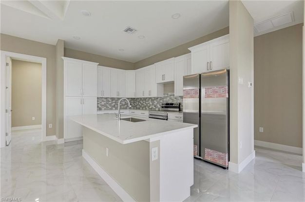 Not the typical cookie cutters lehigh home. Design , engineer and build by naples engineer and builder. 10 ft ceiling with tray throughout the house. Build in entertainment center with electric fire place to add elegance. Open floor plan with good sizable master bedroom. Outside kitchen, screen lanai.