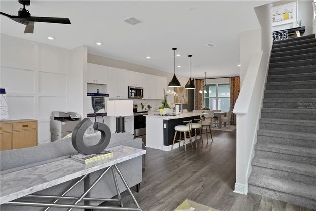 One or more photo(s) has been virtually staged. Under Construction. Sample Images Harbor Town Home – Stylish End Unit Living Beautiful end-unit townhome offering 1,644 sq. ft. of thoughtfully designed living space, featuring three bedrooms, two and a half baths, and a spacious two-car garage with a charming paver driveway. Step inside to impressive tall ceilings, enhancing the natural light and creating a bright, open, and airy atmosphere throughout. Elegant linen cabinets and sleek quartz countertops, perfectly paired with durable, designer-inspired RevWood laminate flooring that flows seamlessly across the first floor. A perfect blend of style, functionality, and modern comfort—ideal for everyday living and effortless entertaining.