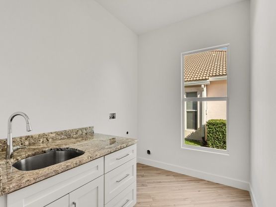 Experience modern Florida living in the brand-new 4BR/2.5BA lakefront home designed for comfort, style, and easy everyday living. Set on a private homesite backing to a peaceful conservation area, this property offers quiet mornings, sunset views, and a true indoor-outdoor lifestyle. Step inside to 10 ft ceilings, impact windows/doors, Italian porcelain flooring, and a bright open layout. The gourmet kitchen is the heart of the home with an 8 ft granite island, matching backsplash, Whirlpool appliances and a wet bar in the living area--perfect for hosting. Move-in ready!