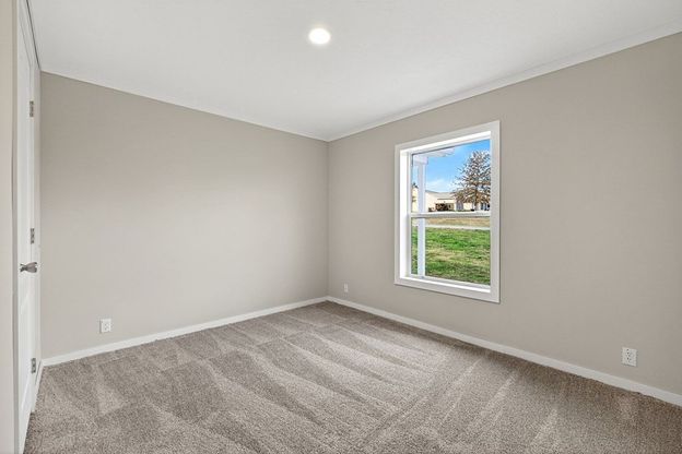 This energy-efficient 3-bed, 2-bath home offers 1,625 sq ft on 1.317 acres with eight-foot flat ceilings, finished drywall, and abundant natural light from numerous windows. The kitchen features stainless appliances, a wall-mounted range hood, a large central island, a double-basin farmhouse sink, and generous cabinet space. Two secondary bedrooms off the kitchen include carpeted flooring and share a hall bath with a solid fiberglass tub/shower and ample storage. The primary suite offers a luxurious freestanding sit-down tub, a walk-in shower with a rain shower head, and a spacious closet with built-in drawers and organizers. A mudroom with utility sink adds everyday convenience.
