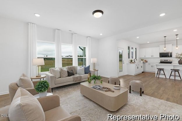 Experience semi-custom living in Benson Village with the Lenox plan, offering over 2,500 sq ft of stylish space and a 2-car garage. The main level includes a private study, formal dining, and an open-concept kitchen with quartz countertops, tile backsplash, stainless steel appliances, and designer finishes. The spacious great room and covered rear porch provide ideal spaces for relaxing or entertaining. Upstairs features a versatile loft, three secondary bedrooms, a full bath, and a convenient laundry room. The expansive primary suite includes a luxurious ensuite and large walk-in closet. Thoughtful details and modern touches throughout make this home a standout in a growing, vibrant community.