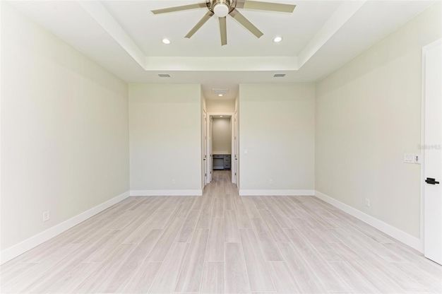 One or more photo(s) has been virtually staged. Welcome to this stunning 3-bedroom, 3-bathroom, 2-car garage home spanning 2,245 square feet of luxurious living space. Step into the epitome of modern elegance with an open-concept layout boasting soaring ceilings and high-end finishes, adorned with porcelain tile throughout. Unwind in the spacious living room, complete with a modern entertainment center with a fireplace. The heart of this home is the expansive kitchen, featuring a large island, boasting sleek gray cabinetry, stainless steel appliances, and a beautiful backsplash. A breakfast nook and formal dining area are perfect for entertaining guests or enjoying family dinners. Each of the three bedrooms is a private retreat, featuring en-suite bathrooms for ultimate convenience. The primary bedroom overlooks the lanai and backyard oasis, offering his and her walk-in closets and a spa-like bathroom. For added functionality, this home includes a laundry room and office space, ensuring every need is met. Step outside to the covered lanai, where endless possibilities await in the spacious backyard, offering ample room for a future pool deck and outdoor kitchen, all with views of the canal in the back of the property. With safety as the priority, this home is equipped with hurricane-impact windows to provide protection during inclement weather conditions. Conveniently located near I-75, beautiful beaches, and plenty of options for shopping, dining and outdoor activities. Don't let this opportunity slip away - schedule a showing today and make this dream home yours!