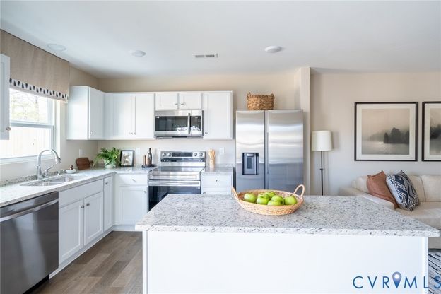 Meet the Raleigh, READY NOW: a 3-bedroom, 2.5-bath townhome with an open floor plan and on-trend design packages. The main level features a kitchen with stainless steel appliances, island, and pantry, plus a cafe opening to the back patio (10x12) and a spacious family room. Upstairs, enjoy the private owner's suite with a large walk-in closet and en-suite upgraded owner's bath, two additional bedrooms, loft, and laundry room. Styled with the on-trend Brentwood Design Package, this home is ready for you! Photos are of similar home selections. The Crossings at Mulberry is located in Henrico offering 2-story townhomes with 1-car garages! Say goodbye to lawn care and HELLO to low-maintenance living to free up your time! Grants available for qualified buyers! Up to $15,000 in closing costs. Call today!