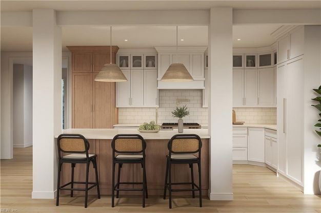 Welcome to this stunning new construction offering 5 bedrooms, 4.5 baths, plus a versatile finished room over the garage with its own full bath. The exterior features board-and-batten dormers, stacked stone accents, and travertine front and rear porches. Inside, the home blends timeless craftsmanship with modern comfort - 9’ ceilings, custom trim, and smooth finishes throughout. The chef’s kitchen boasts custom cabinets, Monogram appliances, spice cabinet, walk-in pantry. The open concept living area is complete with tray ceilings, fireplace, and custom dry bar with wine fridge. The first-floor primary suite includes a spa-inspired bath and custom closet. Outdoor living shines with a 12’x24’ covered porch, gas grill hookup, outdoor shower, and generator pre-wire. Additional highlights: office with French doors, mudroom, oversized garage, custom closets, and 3-zone high-efficiency HVAC.***Virtual Renderings-Pool/Deck are an additional option-Reach out for all options