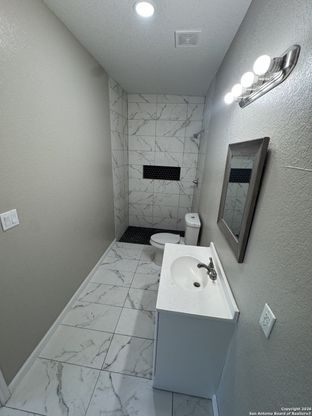 Beautiful New Home One Story Newly Constructed home. Contemporary design. You will love the open floor plan. Featuring high callings, vinyl flooring throughout the house has a spacious living room a very cozy house. Beautiful dining area for hosting family gatherings. Kitchen has custom cabinetry walk in pantry and central island. Property has covered patio , spaciou8s backyard invites gardening. Perfect location minutes form downtown San Antonio, come and see for yourself beautiful home can be our forever home.