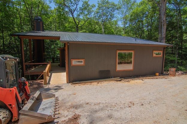 CREEK FRONT..... Experience mountain living at its finest with this stunning 3 bedroom, 2 bathroom modern cabin nestled along Big Creek, a certified trout stream, boasting 202 feet of rushing creek frontage. Located just off the highly desirable Aska Road, this property offers the perfect blend of privacy, adventure, and comfort. Inside, the open-concept design features two spacious living rooms, three fireplaces(2 indoor and 1 outdoor), and a wet bar-ideal for entertaining after a long day of outdoor fun. Floor-to-ceiling windows invite natural light and showcase the peaceful creek setting. Enjoy outdoor living year-round with a cozy fireplace over-looking the water, perfect for relaxing to the sound of the creek. A $3,000. appliance allowance allows buyers to personalize the kitchen to their taste. A unique bonus: the property extends across the road, offering endless possibilities- build a garage, man cave, game room, guest house, or mother in law suite. The options truly are limitless. Minutes from hiking, biking, tubing, kayaking, and more from the Aska Adventure area, this modern cabin is ideal as a full time residence, mountain get away, or income-producing retreat.