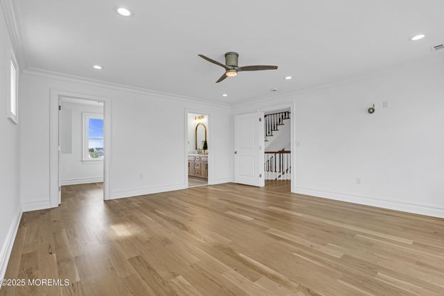 Curtis Point waterfront masterpiece by Charles Louis Custom Homes, offering the perfect fusion of timeless craftsmanship and high-end modern amenities. With 6 spacious bedrooms, 5.5 luxurious bathrooms (4 are en suites), and a 2-car garage, this residence is masterfully designed for elegant living and effortless entertaining indoors and out. Step inside to find stunning details throughout: extensive crown molding, base molding, wainscoting paired with 5'' white oak engineered hardwood floors and solid wood doors. The grand family room boasts a coffered ceiling, a gas fireplace with a custom mantel, and built-in LED-lit shelving. The heart of the home is the designer kitchen, complete with white oak cabinetry, a farmhouse sink, coffee bar, center island, quartz countertops, and a premium Viking appliance package that includes a 48" built-in refrigerator, 48" gas cooktop, dual wall ovens, wine cooler, and ice maker. An elevator provides access from the ground floor to the upper levels. The primary suite boasts a private balcony with water views, walk-in closet, and en suite with dual sinks and a shower stall. Enjoy two full laundry rooms, ceiling fans in all bedrooms, custom closet systems, and pre-wired speakers. The home is serviced by a 22KW Generac generator and two-zone HVAC system with smart thermostats. Enter up the grand stiars to the full attic. Outdoors, experience resort-style living with a 12'x30' custom gunite pool and 7'x7' jacuzzi, and a Mont Alpi outdoor kitchen. Relax by the gas fireplace in the covered outdoor "living room" with stone surround. The backyard oasis includes a new vinyl bulkhead with Trex decking, outdoor shower, and security cameras. Don't miss your chance to own one of the finest new construction homes on the Jersey Shore!