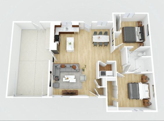 - 2 bedrooms