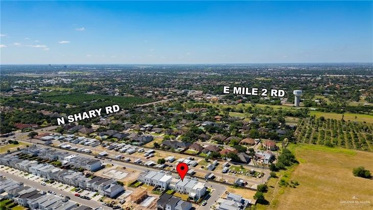 Discover modern elegance in this brand-new 3-bedroom, 2.5-bathroom, 2-story luxury townhome Villa Verano, ideally located in the heart of Sharyland. Featuring Modern Contemporary Luxury Style, this home showcases cutting-edge architecture and an open-concept layout for seamless living. Built with Hebel panels—offering energy efficiency, fire resistance, sound insulation, and durability—and enhanced with spray foam insulation throughout for maximum climate control and comfort. The kitchen includes sleek gray wood-look cabinets in a clean. The principal bedroom features his-and-hers closets. Enjoy low-maintenance luxury in a gated community just off Shary Rd, with quick access to H-E-B, Target, Starbucks, dining, shopping, and fitness centers. Families will appreciate nearby top-rated schools/ Sharyland ISD with parks and walking trails also close by. The quality, scale, and feel must be experienced in person to be fully appreciated.