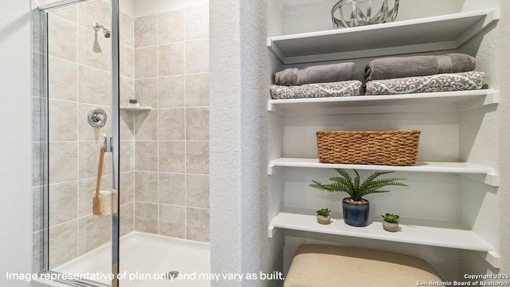 Step into The Grace floor plan in Applewood in San Antonio, TX. This home showcases 2 classic front exteriors, full yard landscaping and irrigation and a 2-car garage. Inside this 4 bedroom, 2.5 bathroom home, you will find 1952 square feet of living space designed to meet your needs. The arched front patio opens to a grand foyer which then leads to a spacious living room. The living room blends seamlessly into the kitchen and dining area in an open concept floorplan. Your kitchen is built for the ultimate home chef and offers granite counter tops, stainless steel appliances, and a kitchen island overlooking the living room. Don't forget a deep, single basin kitchen sink for convenience and ease. The staircase leads to the upstairs main bedroom suite, all secondary bedrooms, and your utility room. The Grace floor plan is ideal if you want to keep your entertaining space and private space separate. The upstairs main bedroom has an attached bathroom that includes a tiled walk-in shower, separate water closet and plenty of storage space with built-in shelving and a grand walk-in closet. Additional features of this home include sheet vinyl flooring in the entry, living room, and all wet areas, granite countertops in all bathrooms and our HOME IS CONNECTED base package. Using one central hub that talks to all the devices in your home, you can control the lights, thermostat and locks, all from your cellular device.