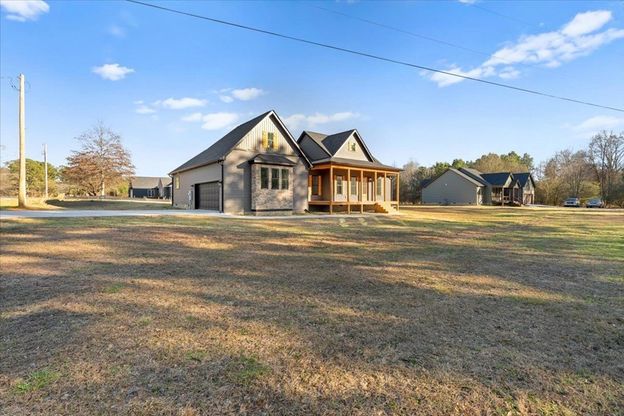 New Construction Farmhouse with modern designs. Beautifully designed new construction home featuring a spacious open-concept floor plan. Home offers a split bedroom plan with 3 bedrooms, 2 full baths and double access laundry room. Vaulted ceilings welcome you into the large open living/dining/kitchen areas. Kitchen features quartz countertops, high end appliances and a massive island. Master bath features a tile shower, split vanities and soaking tub. Covered front and back porches with a large 2 car garage on a large level corner lot. Ready now for its first owner.