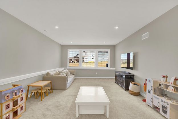 This single-family residence in Chatham Hills offers a beautiful canvas for crafting your ideal lifestyle. Built in 2024, this property provides a fresh start in a desirable kid-friendly cul-de-sac location with NO traffic, all with the desired amenities of Chatham Hills. Your social membership includes two pools, pickleball, tennis, full fitness area including exercise classes, 9 hole executive golf course, bowling, child care, clubhouse, and 2 restaurants! This single-family residence has 4 spacious bedrooms, 3 1/2 baths, and an office area with over 3,100 sq ft of finished living space and another 1,200 in the basement that has a built-in whole home water softener system and is roughed in for full bath and wet bar and ready to finish. You will love the 2 story great room with a fireplace and built-in 5 speaker surround sound system that is open to the kitchen and dining areas. The kitchen boasts a large island with quartz countertops, gas range with a hood, and upgraded lighting. One of the best features of this home is an extra playroom (or family room) that is easily accessible from the rest of the house. The primary bedroom is very large with a sitting room area as well as a large bathroom, two walk in closets, and built-in surround sound to enjoy music while getting ready. The remaining spacious bedrooms all have ample closets with one being a walk in. Don't miss the outside entertaining area with the covered porch and upgraded full Unilock paver patio with sitting wall overlooking the yard or the fully finished and oversized garage/man cave complete with polyaspartic floor coating, contrasting wall and ceiling paint to match the flooring, and built-in surround sound. Additional enhancements include a full uplight and pathway lighting system in the front of the home and upgraded mirrors in each bathroom. You will love living here!