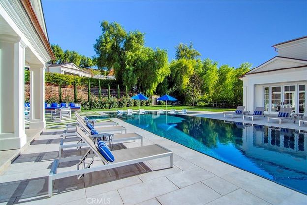 This exceptional custom estate presents a sophisticated French Country Modern sensibility that is both architectural and enduring. Thoughtfully designed and beautifully proportioned, the home offers a sense of quiet luxury rooted in quality and craftsmanship rather than trend. Upon entry, a dramatic foyer and adjoining sitting room create an exceptional arrival experience, highlighted by an illuminated bar with views across the pool. A gourmet kitchen opens seamlessly to an expansive family room, ideal for everyday living and entertaining. The layout continues with a game room with wet bar, private movie theater, custom paneled office, and a striking two-story gym filled with natural light, complete with a sauna and massage room. A discreet PRIVATE ELEVATOR serves the home, enhancing comfort across levels. The primary suite is a serene retreat featuring an all-stone bath, steam shower, sauna, and generous dual custom closets. Throughout the home, high-quality finishes, designer lighting, blackout window treatments, and custom closet systems reflect a thoughtful approach to luxury living. Recent enhancements include a whole-house water filtration system, upgraded HVAC, comprehensive security with cameras, and backup generators serving both the main residence and guest house. The grounds unfold like a private countryside escape, set across approximately 2.34 ACRES SPANNING TWO PARCELS, with mature landscaping, open skies, and a PERSONAL VINEYARD THAT ACTIVELY PRODUCES WINE, lending the property a true estate character. Outdoor amenities include an outdoor living room with fireplace, indoor-outdoor bar, pizza oven, BBQ center, fire pit, zero-edge pool with Baja entry, spa, and circular driveway with entry fountains. Music flows throughout the home via a high-quality sound system, complemented by a newly completed ultra-modern RECORDING STUDIO. A full GUEST HOUSE with second kitchen and private driveway offers exceptional flexibility, along with an additional seven-car garage. Square footage includes both the main residence and guest house. Ownership also includes access to the Hidden Hills lifestyle, offering guard-gated privacy, on-site security, miles of hiking and equestrian trails, riding arenas, tennis and pickleball courts, a community pool, recreation center, theater, and a strong sense of community within a private, pastoral setting. This one-of-a-kind Hidden Hills estate offers a lifestyle of understated luxury, privacy, and enduring elegance.