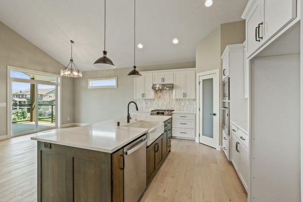 Beautiful Paras Built Selkirk plan in the Glennaire Neighborhood. This stunning new home has soaring views of Spokane and the Palouse. When you walk through the front door, you are greeted by cathedral ceilings, great room with stone fireplace, bright open kitchen with a center island, quartz counter tops, stainless steel appliances, and a pantry. Other features include LVP flooring throughout most of the main floor, primary suite with a walk-in tile shower, double vanities, and walk-in closet. The lower level has plenty of natural light, wet bar, 3 additional bedrooms and slider to the patio. This wonderful home has a large, covered deck, full yard landscaping, and generous 3 car garage.
