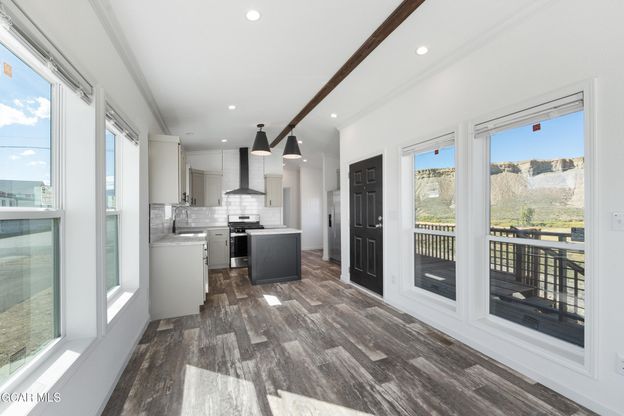 Riverside Retreat with Expansive Deck & Modern Open Floor Plan. Sip your morning coffee while soaking in breathtaking views of the Muddy River, Kremmling Cliffs and Wolford Mountain from the HUGE private deck of this thoughtfully designed 1-bedroom, 1-bathroom home. At 788 sq ft, it may sound cozy, but the wide open floor plan, soaring 9' ceilings, and floor-to-ceiling windows flood the home with natural light and make it feel incredibly spacious. Inside, you'll love the generously sized bedroom and bathroom, plus a welcoming great room that seamlessly flows into the kitchen. The kitchen is equipped with full-size appliances, an island, ample storage, and modern finishes-perfect for cooking, entertaining, or simply enjoying the views. Practical details include dedicated washer/dryer hookups designed for a stackable unit, ensuring convenience without sacrificing space. And did we mention the HUGE deck? It's the ideal spot for outdoor dining, entertaining, or simply relaxing as the river flows by. Located just a stone's throw away from public lands, scenic trails, and Wolford Lake, this home is a true outdoor lover's dream. Here, you can embrace adventure year-round with endless opportunities for hiking, mountain biking, horseback riding, UTV off-roading, cross-country skiing, snowshoeing, and boatingall right outside your door.