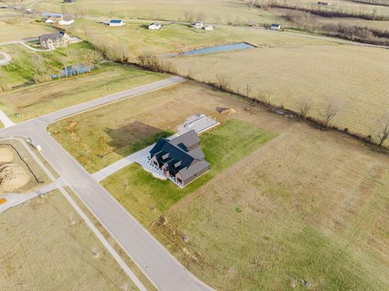 Set on a private, 1+ acre lot at the end of a quiet dead-end street, backing up to open farmland, this nearly new ranch home feels very private and secluded from the city life. Inside, over 2,500 sqft of thoughtfully designed living space unfolds, anchored by a rare 30' x 50' (1500 sqft) detached shop to be completed prior to closing. Step through the welcoming front door into a bright foyer with soaring ceilings, opening to an airy living area where natural light pours in, highlighting a stone-surround fireplace that anchors the space. The kitchen is the heart of the home, with a huge island, wall oven, gas range, butler's pantry, and a built-in dog feeding station-perfect for everyday life and entertaining alike. A large, separate utility room keeps chores organized and out of sight. The primary suite is a serene retreat: exposed beams add warmth and character, double vanities and a walk-in shower complement a soaking tub, and a spacious walk-in closet keeps everything perfectly organized. Each bedroom offers generous space and abundant natural light, with upgraded finishes and thoughtful details throughout. Step outside to the covered patio, ideal for relaxing or entertaining, while the attached 3-car garage and the detached 30' x 50' shop provide unmatched space for vehicles, hobbies, or equipment. The attached garage can easily fit 3 FULL SIZED vehicles inside with room to move around and open doors. This home combines modern ranch living with exceptional garage/shop space, all just minutes from shopping, dining, and amenities at Brannon Crossing and Lexington.