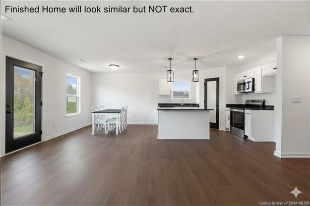 Schuler Homes' Independence Floor plan on a finished WALKOUT lower level! 4 bedrooms, 3 full baths with a wooded back-drop out back! Located in the desirable FAIRVIEW FARM subdivision conveniently located just north of Perry Crossing Rd in Sellersburg giving you easy access to Highway 31 and 60 and Covered Bridge Golf Community. You'll see why this is one of Schuler Homes top selling floor plans. The open floor plan is perfect for entertaining, featuring an in-wall fireplace with shelving on each side, an inviting eat-in kitchen with a corner pantry, tiled backsplash, granite countertops, and an island for more seating. Enjoy stainless steel appliances, pendant lighting, and abundant natural light from large windows. The deck off dining area is perfect for enjoying peaceful evenings outdoors. The master suite offers a serene retreat with dual sinks, a linen closet, and a beautifully tiled shower. The WALKOUT basement provides additional living space with a 4th bedroom, a 3rd bathroom, and a spacious family room, perfect for relaxation or hosting guests, and door to the back patio. Easy access to the mechanical room housing the Energy Efficient Water Heater and Heat Pump, plus the exterior walls are spray foam to help with the energy savings. SMART ENERGY RATED. The home will be ready for you to move into by the end of March/first of April, just in time to start enjoying the great backyard! LOT 208. All measurements and sq.ft. are approximate. If critical, Buyer to verify.