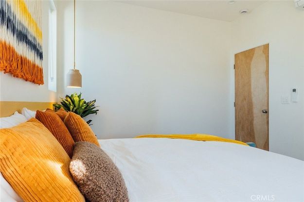Welcome to your desert oasis at 57885 Sierra Vista. Set just above the road and backed by the hills of Buena Vista South, this modern, architect-designed home feels private, peaceful, and deeply connected to the landscape around it. Light moves gently through the space as the day unfolds, and evenings bring wide, open sunsets with views reaching all the way to San Gorgonio – Moments that never get old. An oversized mahogany front door opens into the simple, beautiful entry where your eye is immediately drawn through a picture window to the private courtyard and pool beyond. Inside, the open kitchen and living area feels airy without being oversized, thanks to 10-foot ceilings and a thoughtful layout. Moroccan zellige tiles run throughout the home, adding warmth and texture, while a custom built-in bookshelf gives the livingroom personality and purpose. Easy indoor/outdoor living and dining is accessible with the massive glass double-sliding doors. The kitchen is finished with Bosch appliances, ample storage, and a smart flow that works just as well for entertaining as it does for everyday living. A conveniently placed half bath sits just off the entry. The bedroom layout is intentionally designed for privacy. Each room is set apart and finished with 9-foot ceilings, creating a calm, restful feel throughout. The primary suite is a true retreat, with a walk-in closet, double vanity, spa-like soaking tub, and separate walk-in shower. Two additional bedrooms and a shared bath, as well as outdoor shower, are tucked quietly at the opposite end of the home. Not to be outdone by the interior, outside is where this home really comes to life. A private, block-walled courtyard centers around a heated 35-foot saltwater pool and spa. Nearby, a cedar sauna and outdoor shower sit behind a sculptural terra-cotta breezeblock wall. A built-in firepit with seating and nearby hammocks create the kind of space where evenings stretch longer than planned. With an elevated lot, two-car carport, Tesla charger, Starlink WiFi, and incredible light throughout the day, this is a home that’s easy to love and hard to leave. Offered fully furnished and completely turnkey, this amazing desert residence is ready to move into or place directly into service as an investment property with high-cashflow potential. Don’t let this opportunity pass you by – Call your agent for a private showing today.