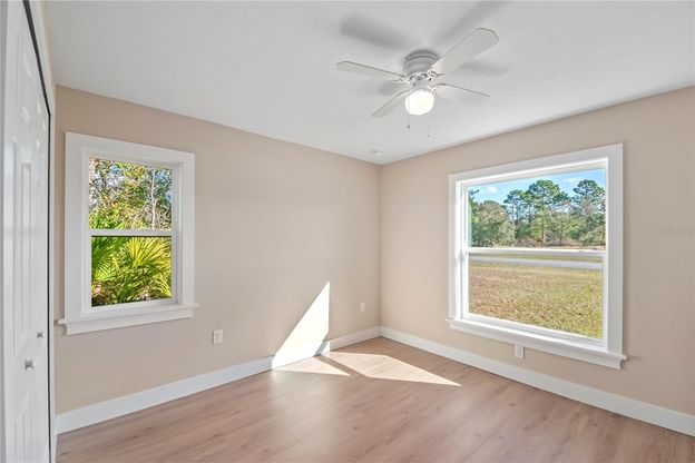 Discover this newly built single-family home in the sought-after Marion Oaks, offering a fresh take on modern living. Designed for comfort and functionality, this move-in-ready residence features a well-planned layout with three bedrooms and two full bathrooms. The heart of the home is the open living space, where vaulted ceilings and luxury engineered hardwood floors create an airy, welcoming atmosphere. The kitchen blends style and practicality with quartz countertops, stainless steel appliances, contemporary cabinetry, and a breakfast bar ideal for casual meals or hosting guests. The primary bedroom provides a private escape, complete with a walk-in closet, a dual-sink vanity, and a tiled walk-in shower. Two additional bedrooms offer flexibility for family, guests, or a home office. Step outside to enjoy a covered patio perfect for relaxing outdoors, along with attractive landscaping and a two-car garage finished with durable epoxy flooring. Conveniently located near shopping, dining, schools, and parks, and offering easy access to major highways, this home delivers both convenience and a sense of community. An excellent opportunity to own a brand-new home in the expanding Ocala area.