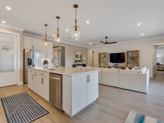 PRICED TO SELL! Highly sought-after Stellar model w/ over $200K in upgrades by current owner. Zero-corner sliding doors open to covered seating area overlooking a NEW screened, salt water, heated, sun-shelf pool & spa w/ 2 waterfalls & travertine tile. Crown molding & detailed trim, shiplap wall, designer bathroom wallpaper, and more. Stunning island kitchen with tons of storage & walk-in pantry. Open concept living w/ private den, office or sitting area. Expanded 3-car garage w/epoxy floors. New landscaping completes your private tropical retreat. Built 2025 w/transferable warranties.