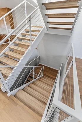 Downtown Bentonville living at Lightbox, the closest residential development to Walmart Campus, where modern design meets intelligent living. This Full Light plan townhome offers four bedrooms, three and one half baths, and an additional upper-level living or flex space. The interior is filled with natural light throughout the day and features a floating steel staircase that anchors the home with clean, modern lines. The primary suite includes dual closets, a floating vanity, and a spa-style wet room. The kitchen is finished with oak cabinetry and integrated appliances, including a high-performance induction range. An oversized two-car garage provides ample storage. Community amenities include a shared outdoor patio with grills and a fire pit. Located directly across from 8th Street Market and The Momentary, with immediate access to dining, culture, trails, and downtown amenities. Designed for low-maintenance, lock-and-leave living with exceptional downtown walkability.