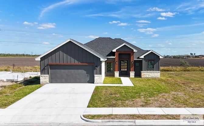 Step into this beautifully crafted modern farmhouse-style new construction built by Premier RGV Homebuilders, offering 4 bedrooms, 2 baths, 2-car garage, and 1,861 sqft of thoughtfully designed living space. The open-concept layout features a spacious kitchen with quartz countertops, ample cabinetry, a gorgeous island, and a large pantry, making it perfect for everyday living and entertaining. The private primary suite is a true retreat, showcasing a spa-like bathroom with a large walk-in shower, oversized soaking tub, and an expansive walk-in closet. Great back patio to enjoy these Texas nights! Move-in ready!! Contact me for your appointment today!