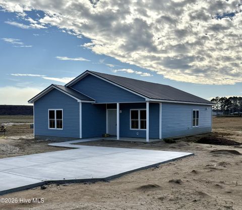 This beautifully crafted 3-bedroom, 2-bath new construction ranch is packed with features that deliver long-term value, low maintenance, and everyday convenience. From the top down, the metal roof stands out as a major upgrade-offering superior durability, energy efficiency, and longevity compared to traditional roofing. Inside, enjoy open-concept living with LVP flooring throughout the entire home, providing a seamless, stylish, and easy-to-maintain finish. The kitchen is designed for real-life living, featuring a dedicated pantry for extra storage, a bar for additional seating, and a window over the sink that fills the space with natural light and creates a bright, welcoming workspace. Just off the kitchen, the laundry room offers direct access to the backyard, adding functionality and flow you'll appreciate daily. The primary suite features a tiled walk-in shower and a spacious walk-in closet, offering comfort and thoughtful design. Outside, the home continues to impress with a covered front porch, a rear patio ideal for relaxing or entertaining, and a long driveway with ample parking. The septic system is strategically located in the front yard, leaving the backyard completely open and usable-perfect for a firepit, garage, workshop, or simply enjoying outdoor living. This home combines quality construction, smart upgrades, and a functional layout, making it a standout option for buyers who value efficiency, durability, and thoughtful design in a new construction home. USDA Eligible | No City Taxes | No HOA