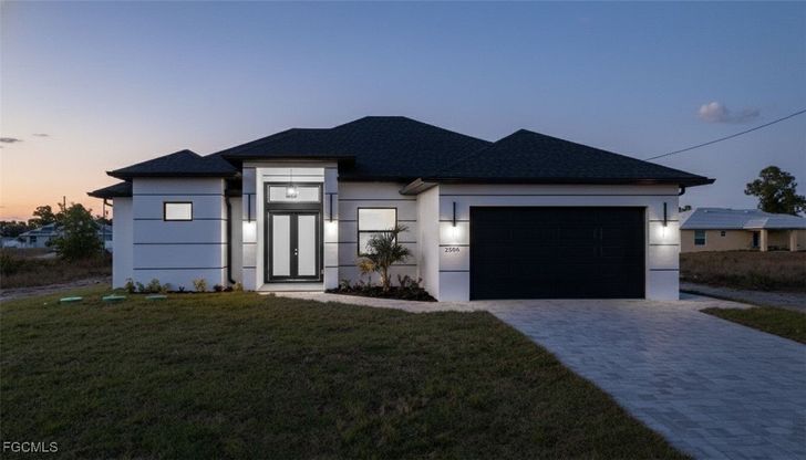 Welcome to this stunning modern new construction single-family home located in Lehigh Acres, Florida. Offering 3 bedrooms plus a den and 2 bathrooms across 1,735 square feet, this thoughtfully designed residence features a bright, open floor plan ideal for today's lifestyle. Enjoy tile flooring throughout, sleek quartz countertops, and stainless steel appliances that elevate the contemporary kitchen and living spaces. The open layout flows seamlessly to a covered lanai with a built-in outdoor kitchen-perfect for entertaining or relaxing year-round. With clean modern finishes and quality craftsmanship throughout, this home combines style, comfort, and functionality in a desirable Lehigh Acres location. Home also features a two car garage with epoxy flooring. A must-see opportunity.