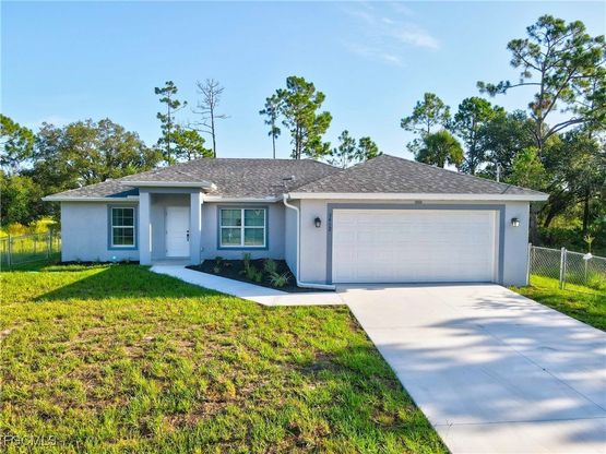 Brand New Construction /3 beds + Den /2 Baths / Fully Fenced / Priced to Sell ! This beautiful new home features 3 bedrooms , a den , and 2 bathrooms with a spacious split floor plan. The kitchen includes quartz countertops, white shaker cabinets, and stainless-steel appliances, plus a washer and dryer. Enjoy title floors throughout, with carpet in the bedrooms and den. The master suite offers his-and-hers walk-in closets, dual sinks, and a frameless glass shower. Outside, enjoy a screened lanai, epoxy garage floor, fully fenced yard, and beautiful landscaping that adds charm and curb appeal. Seller is helping with closing costs! Don't miss this great opportunity-priced to sell! These pictures are of a similar model. 13-45-26-05-00046.0090