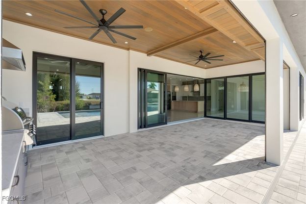 Built by Cape Coral's leading luxury home builder recognized for impeccable craftsmanship and refined modern architecture, this exceptional residence is a confident statement of quality, precision, and elevated waterfront living. Ideally positioned in an area recently approved by the City of Cape Coral for the transformative 7 Islands Project, this property offers both immediate luxury and long-term value. Welcome to the Captiva II, located at 1426 NW 39th Ave, a west-facing Gulf Access Waterfront home designed to capture breathtaking sunset views. Offering 3 bedrooms, 3 bathrooms, and 2,362 square feet under air, this residence blends modern design with thoughtful functionality. The interior showcases quartz countertops, decorative ceiling details, and tile flooring throughout the main living areas, complemented by wood flooring in the study and primary suite. The expansive great room is anchored by an electric fireplace, a built-in 75" LG smart TV, and dramatic 90-degree corner sliding glass doors, creating a seamless indoor-outdoor living experience. A custom dry bar with backlit countertops, integrated sound system, and home automation elevate the home for both everyday comfort and sophisticated entertaining. The kitchen is outfitted with a Samsung appliance package, delivering clean lines, modern efficiency, and timeless appeal. Outdoor living is a true highlight, featuring a custom pool and spa with electric heater, outdoor kitchen, and a covered lanai with a cypress ceiling, all designed for year-round enjoyment. Roll-down shutters provide added convenience and storm protection. Built with durability, efficiency, and peace of mind in mind, this home includes a metal roof, spray foam insulation, 8-foot sliding doors, and is elevated 1.5 feet above flood elevation. The 3-car garage is finished with epoxy flooring and solid interior doors, completing this refined offering. This west-facing waterfront property delivers superior craftsmanship, modern luxury, and future-forward positioning-an exceptional opportunity to own a premier residence in one of Cape Coral's most promising luxury corridors.