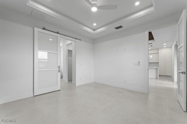 CO in hand - Move-In Ready! Modern new construction featuring hurricane impact windows and doors, a custom kitchen with Calacatta quartz waterfall island, and top-of-the-line appliances. Spacious open floor plan with 10' ceilings, 11.5' coffered ceilings, 8' solid doors, and designer cladding accents. Bathrooms offer floating vanities, frameless showers, LED mirrors, and one-piece toilets. Upgrades include custom closets, porcelain tile flooring, epoxy garage floors, paver driveway, irrigation, side door in the garage with a small paved patio and a tankless water heater. Comes with a 1-year builder's warranty. Special incentives available.